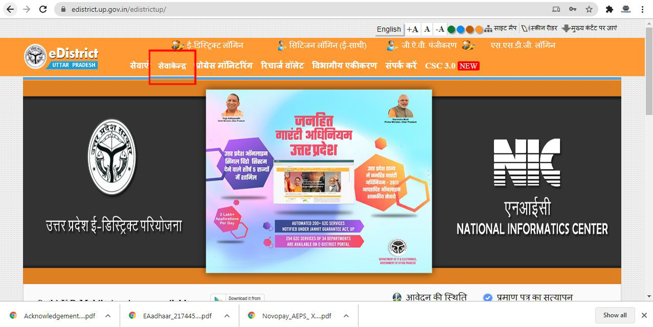2 – उसके बाद जब वेबसाइट खुल जाये तो वहा आपको सेवा केंद्र का बटन मिलेगा उस पर अपको क्लिक करना है